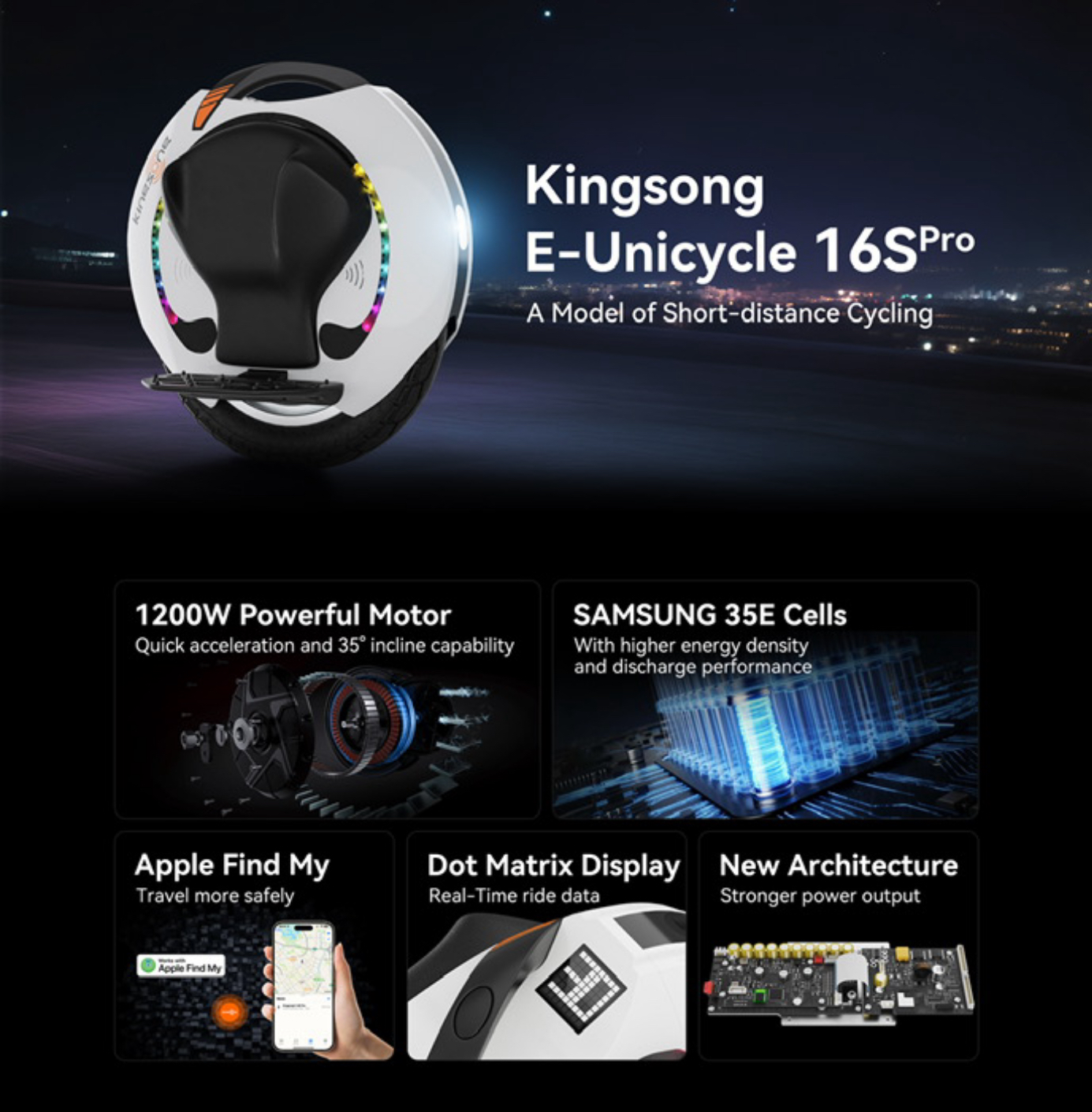 Conçue pour la conduite paisible en milieu urbain sur des surfaces en béton, le pneu de 16 pouces de la Kingsong S16 offre une expérience de conduite à la fois dynamique et confortable, répondant parfaitement aux besoins des utilisateurs. Grâce à sa taille moyenne de 16 pouces, ce pneu combine habilement la maniabilité nécessaire pour naviguer aisément dans les rues étroites de la ville avec le confort requis pour un trajet agréable, quel que soit le terrain.